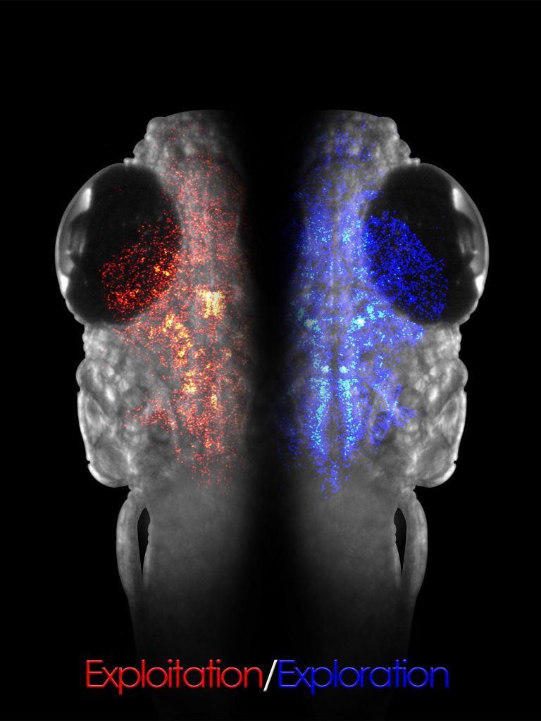 上一刻,你或许在屏幕上随机地浏览着内容;此刻,你却点进了这篇文章,将注意力集中在这行文字上。我们和其它动物一样,往往在探索(exploration)和利用(exploitation)两种行为状态之间转换。最近一项发表在《自然》杂志的斑马鱼幼鱼上的研究,试图揭示这两种行为状态转换的背后,大脑当中发生了什么。