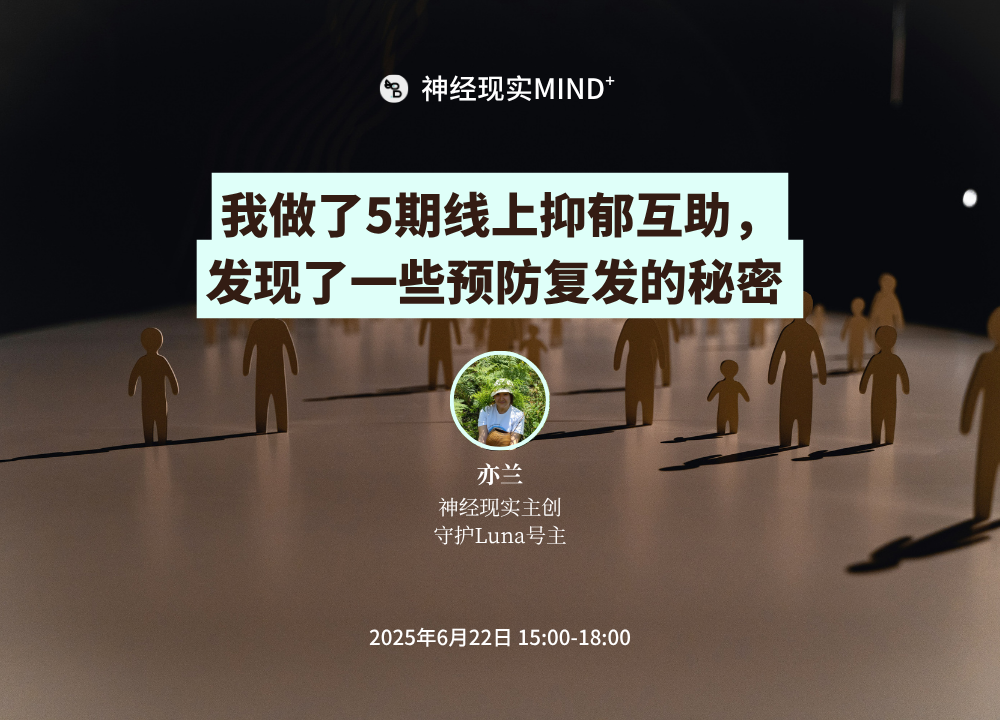 20年-21年,我在线上发起了5期抑郁互助小组,每次为期8-14周。过了将近5年,我在去年年底对参与的小伙伴们进行了回访,结合在抑郁互助进行过程中我的观察,得出了一些关于抑郁症和躁郁症复元和预防复发的经验。作为一个心理行业从业者,我在精神健康这个层面有的是大量的科普经验,线上在神经现实和我自己的公众号守护Luna,线下在706青年空间,各自有一年到几年的光景。在做科普活动的过程中接触到疾病亲历者,同时开始我的助人之旅,在对于伦理谨慎也不断深入用科普和线上线下长期互助活动助人的过程中,我发现我个人身上有一些特质可以用来研究,于是去年年底我又开了一个60人的人际互助支持群,观察疗愈因子,观察参与者,也观察自己。6月22号,我会都展开聊一聊这些话题。